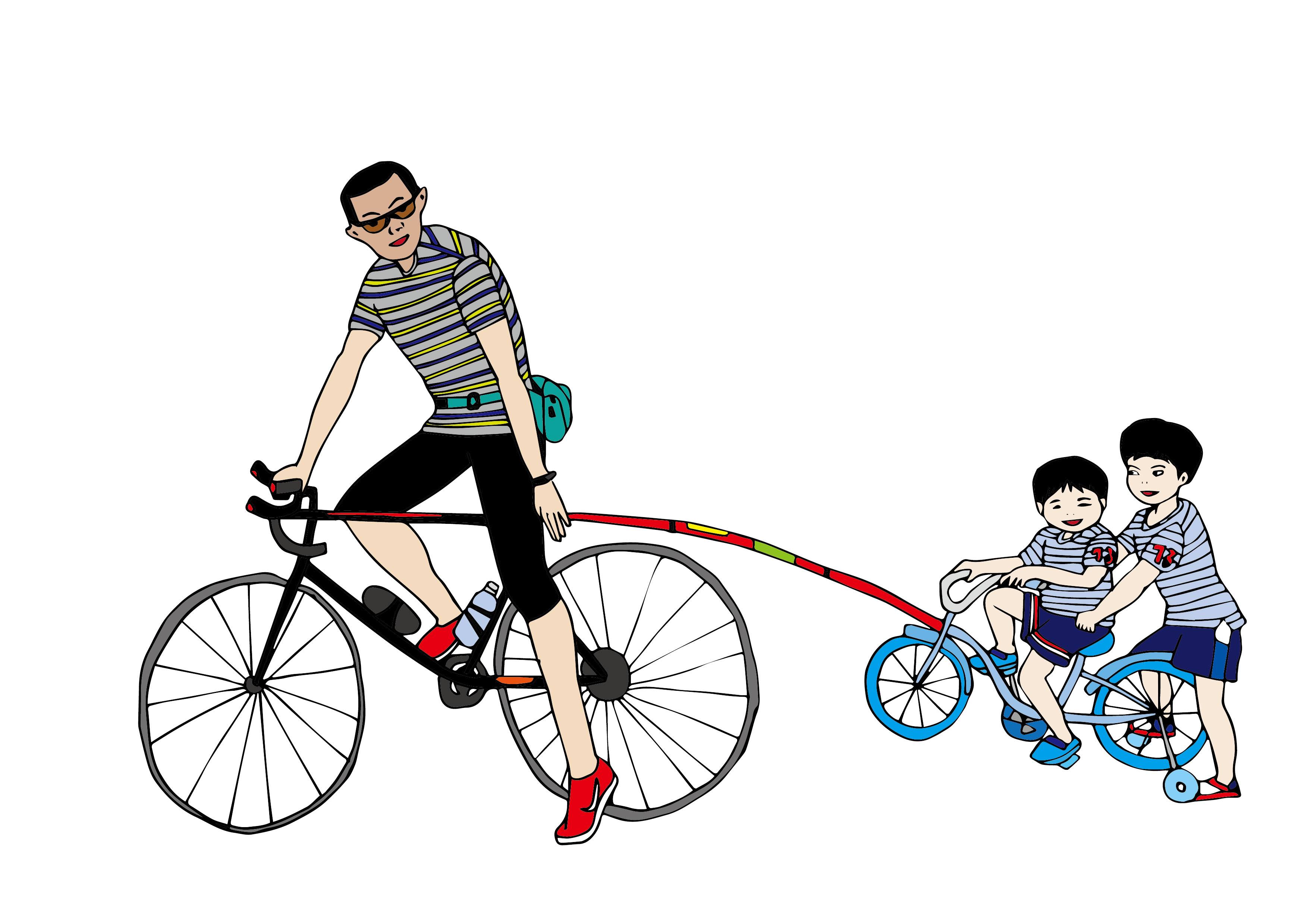 아들이 셋이나 있는 남동생은 꼬맹이들 때문에 이렇게 캐리어를 달고 자전거를 탄다.