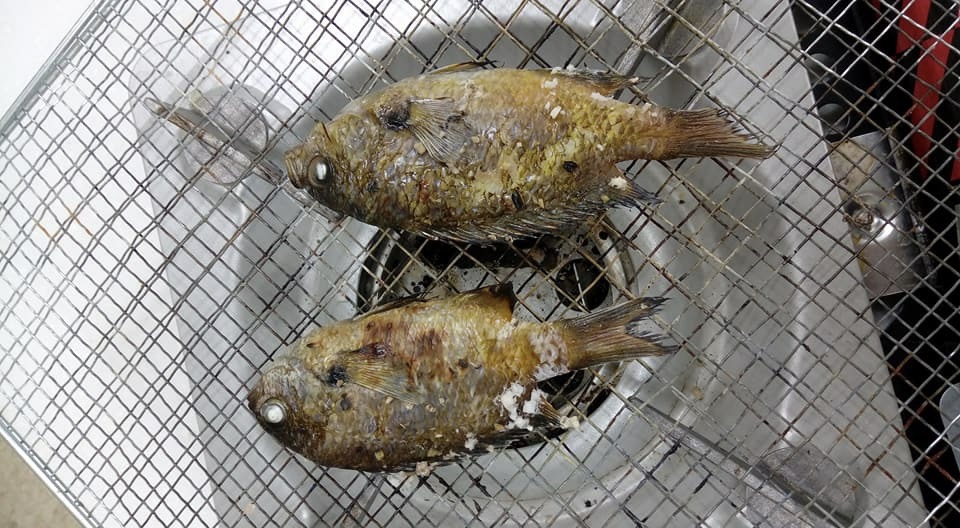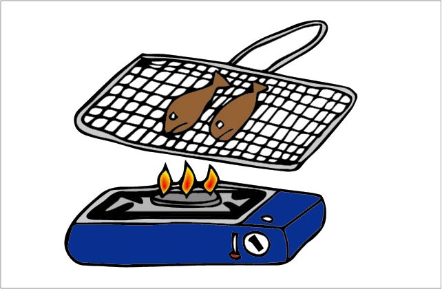 이. 부루스타에 석쇠를 얹고 자리를 얹어놓고 앞뒤로 잘 구워준다.