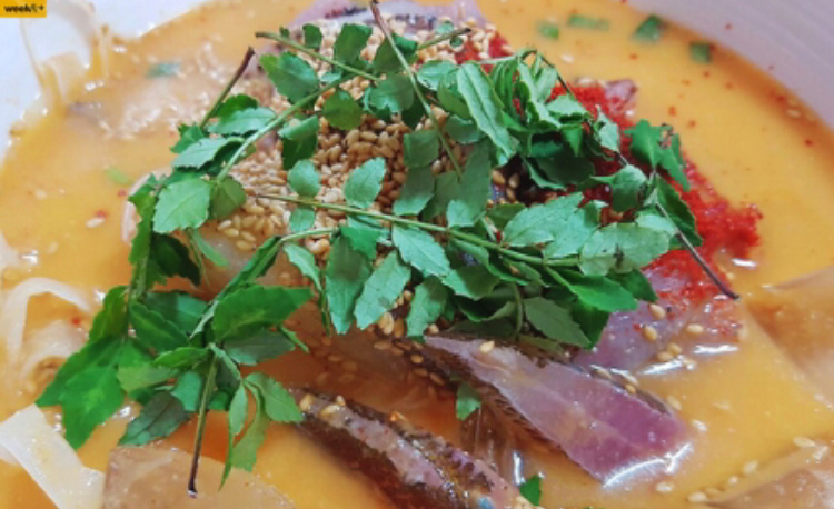 자리를 통째로 썰어 넣고, 된장을 풀어서 만드는 것이 제주도 자리물회의 특징이다.