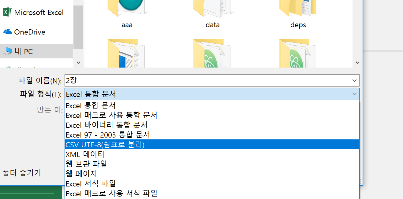 이름을 정해 주고, csv 쉼표로 분리를 클릭해줍니다.