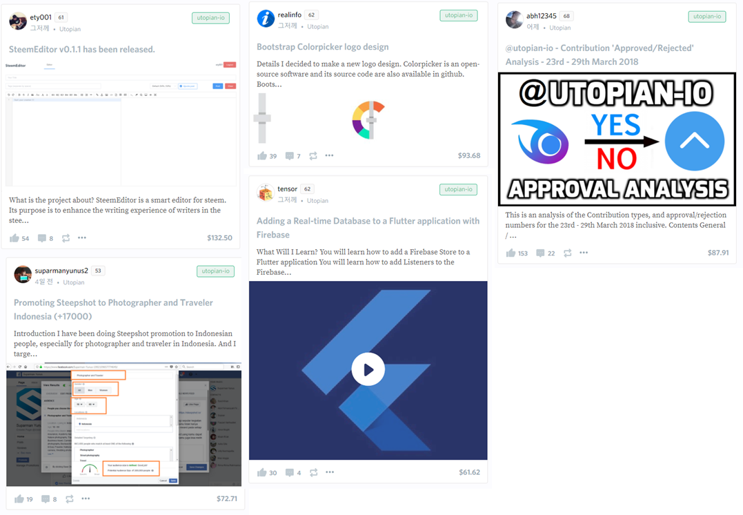 예를 들면 자신의 앱을 만들어서 영어로 유토피아에서 포스팅을 하면 기여자로 인정해주고 유토피안에서 보팅을 해줍니다. 이때는 소유권은 자신이 갖습니다.