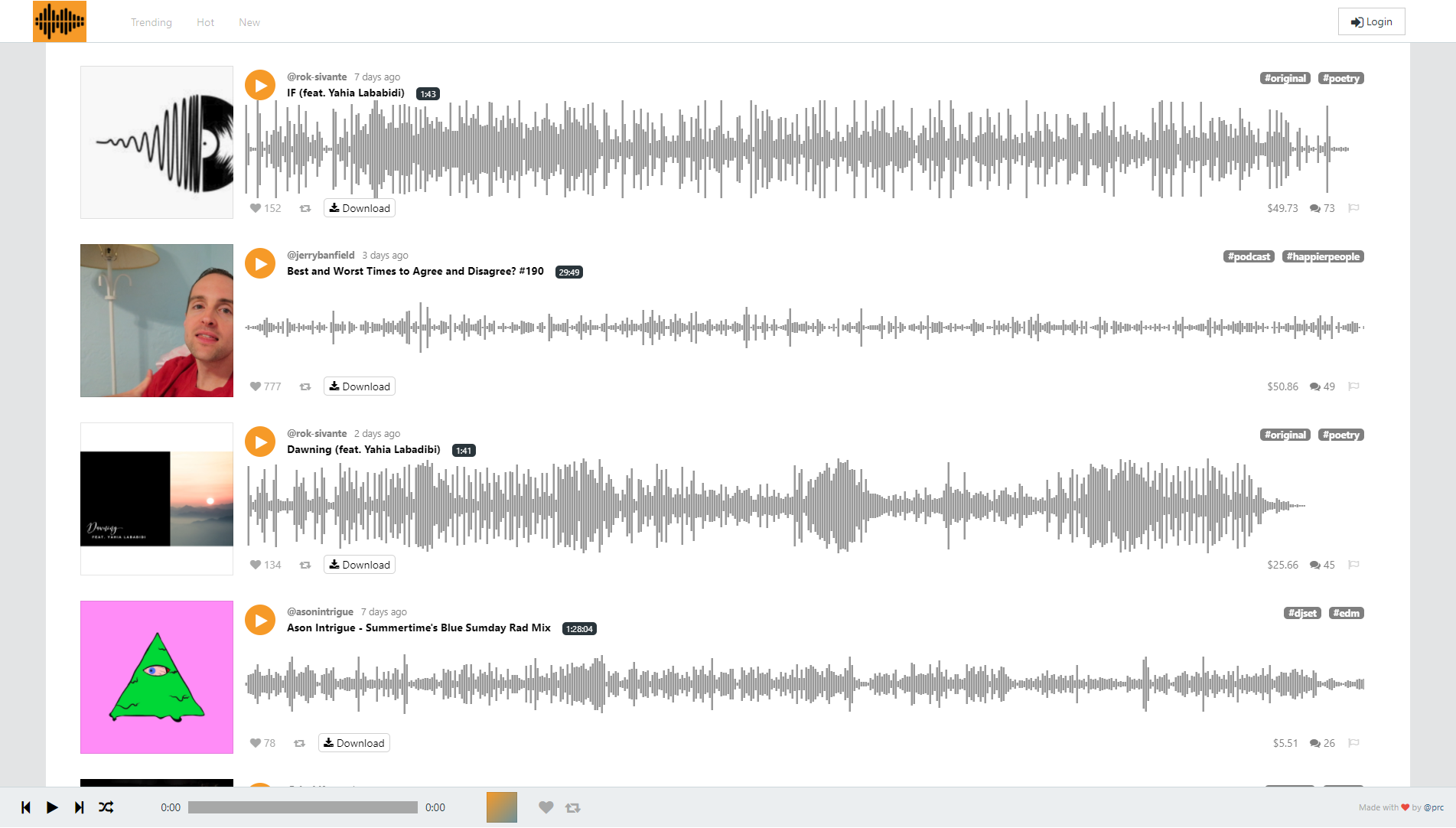 Dsound는 음악을 전문적으로 서비스하는 스팀잇의 서드파티입니다. 주로 음악, 노래와 같은 음악 용도와 팝캐스트, 시낭송과 같이 음악 외의 용도로도 쓰입니다. 하지만 저자보상에서 beneficiary 25%를 가져간다는 특성을 가지고 있고 또한 음악을 찾는 기능이 없다는 단점을 가지고 있습니다.보팅은 보통 $1~30정도로 이루어집니다.