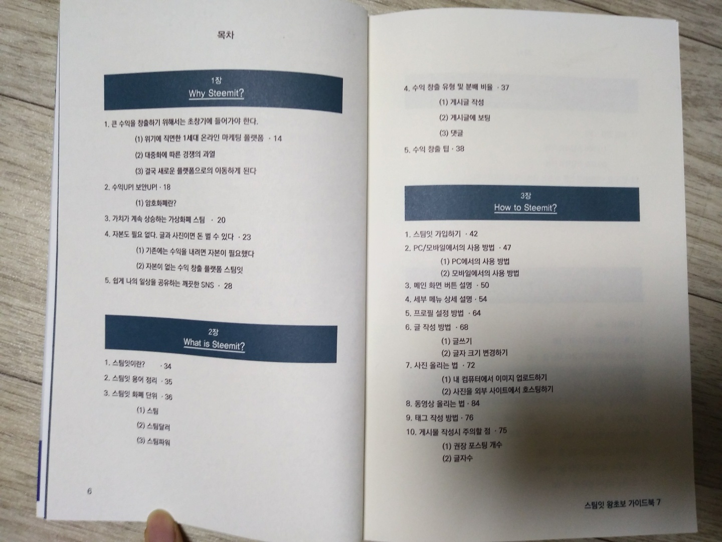 목차를 펼쳐보니, 스팀잇이 무엇인가에 대한 것부터 가입 및 글 작성 방법, 보팅 수익 관련 팁 등