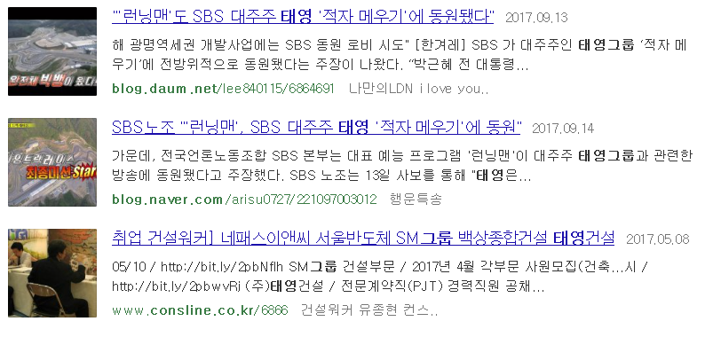 나는 예전부터 알고있었다.. 물은 생명이다라는 캠페인을 할때 태영그룹이 그쪽 사업에 뛰어들어서 띄어주고 있다는 사실을... 이거 정말 공정해야하는데 어쩔수 없는 그룹사 가재는 게편이라고... 예전 아버지다니시던 회사가 sbs뉴스한방에 문을 닫았던..ㅜㅜ