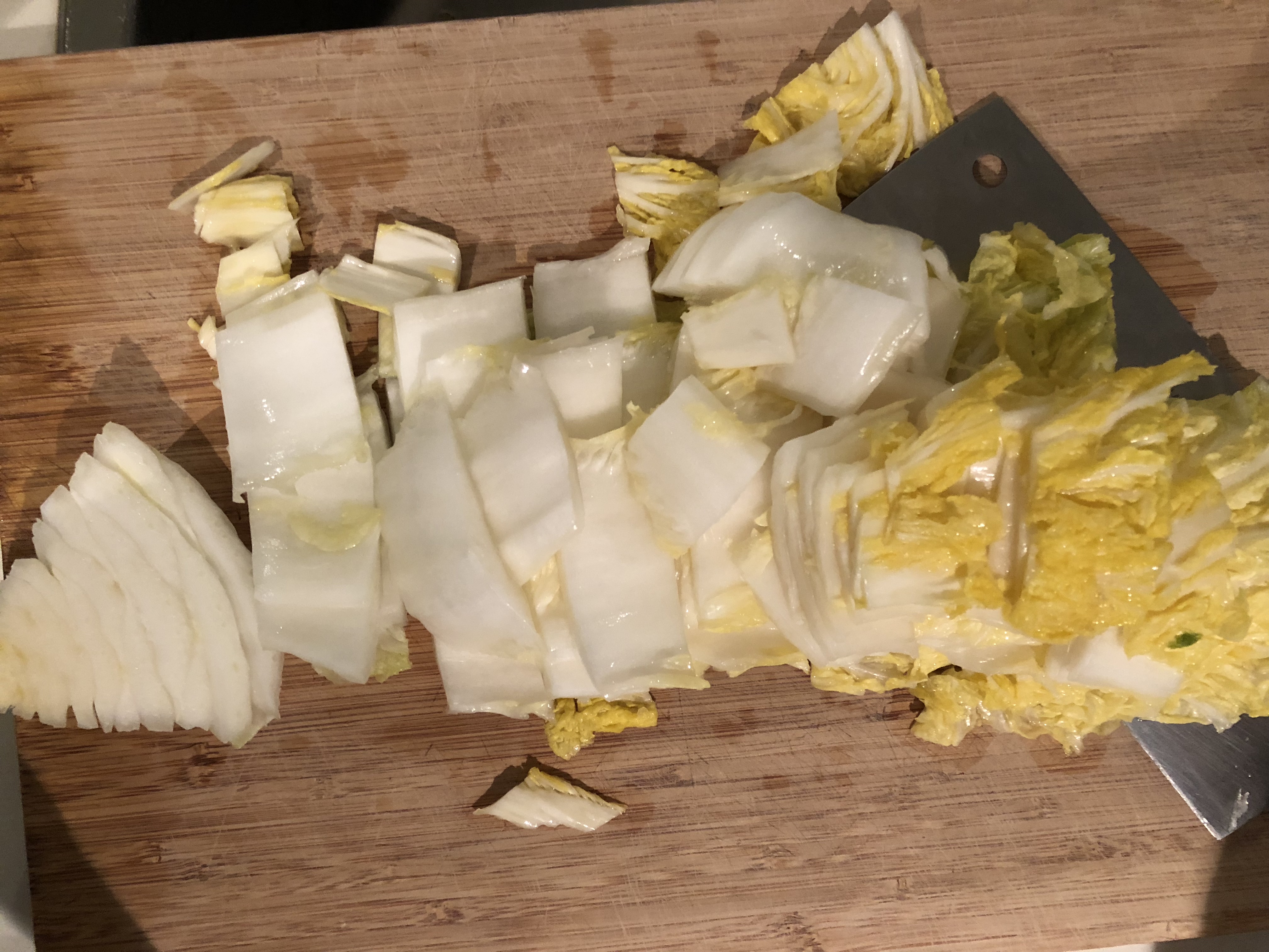 이 잘절여진 배추를 이제 토막냅니다