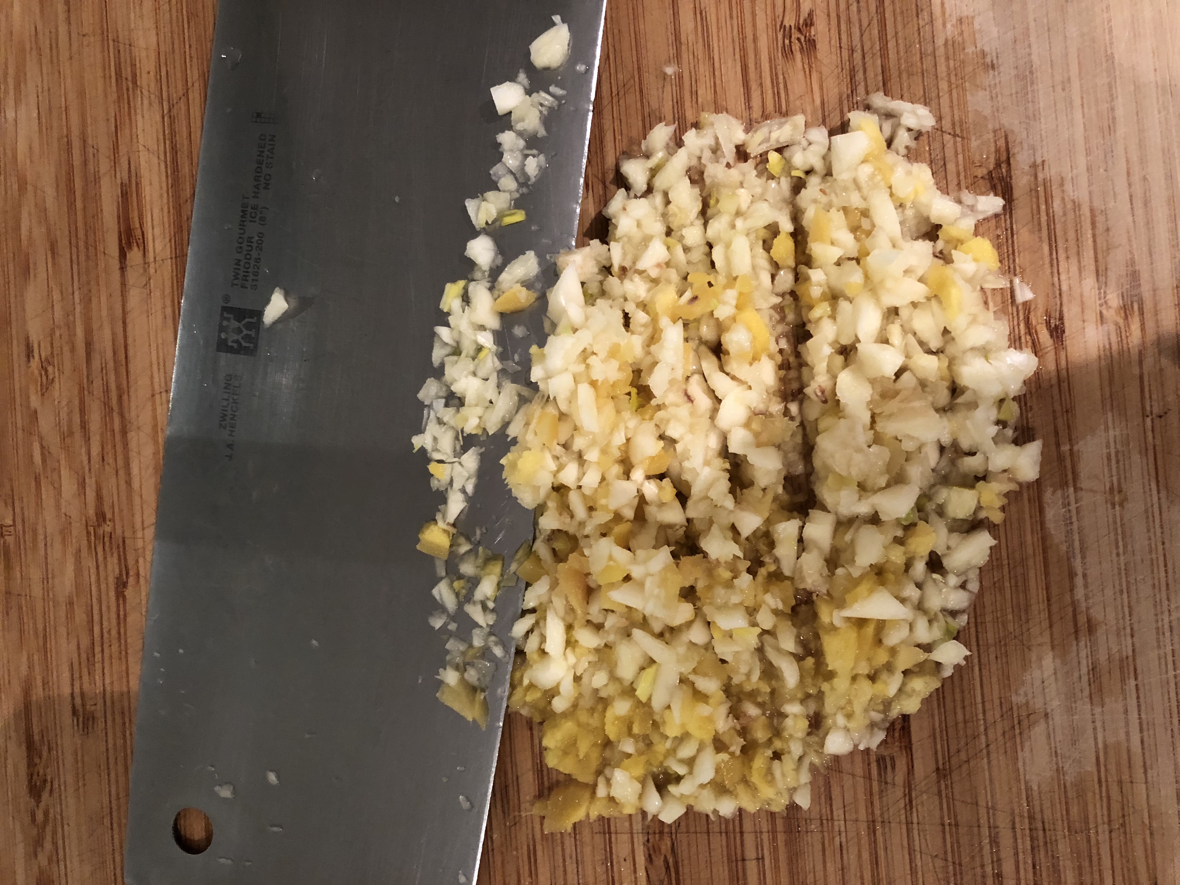 껍질을 깐 생강과함께 다집니다