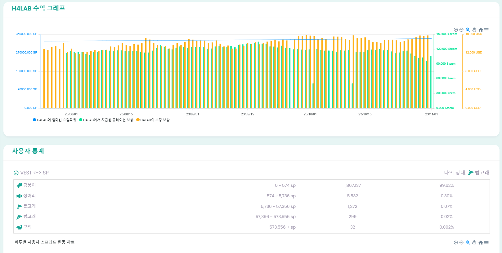 그리고 전체 스팀잇 사용자 통계등이 제공됩니다.