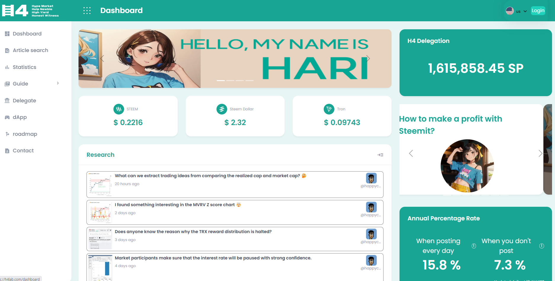 하단에는 H4LAB을 통해 얻은 보팅보상, 큐레이션보상