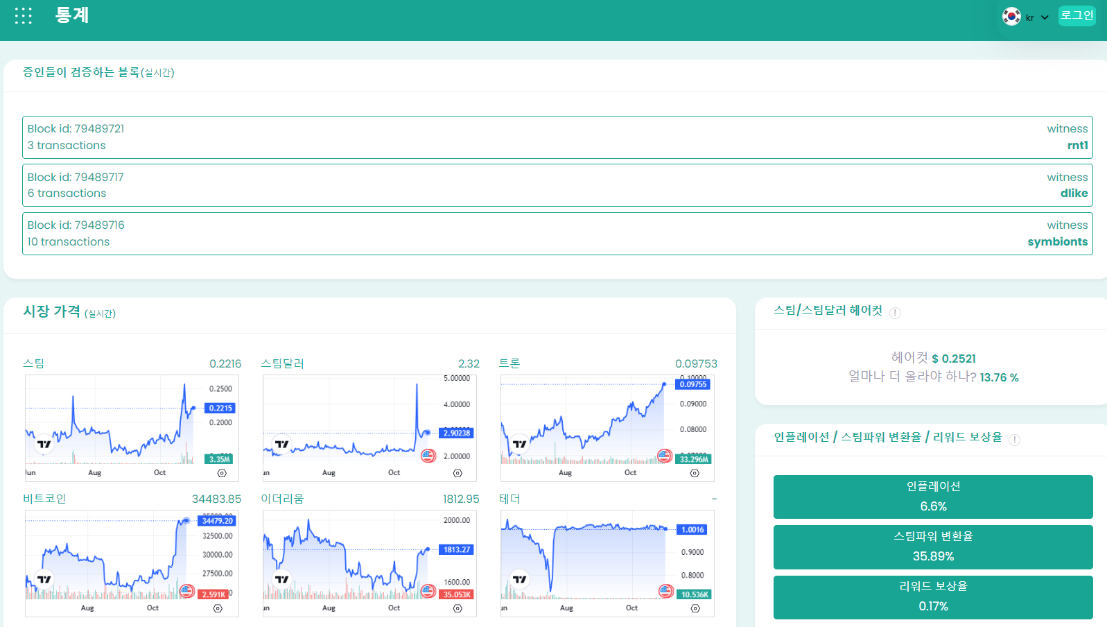 그리고 스팀블록체인의 거시지표가 제공되며