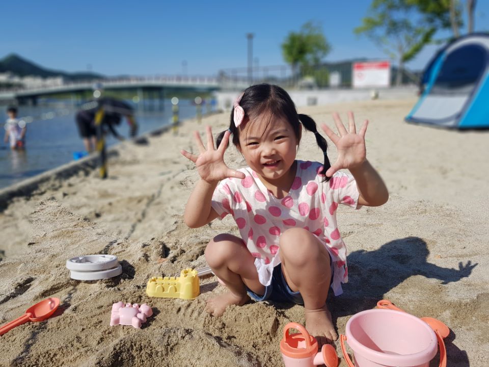 마치 해변에 온듯한 느낌이 들고 아이들이 모래놀이랑 물놀이를 즐길 수 있어요~^^
