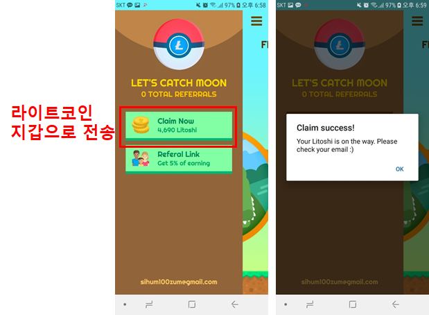 - 어플을 켜놓을 때 조금씩 차는 에너지를 사용해 뽑기로 라이트코인 획득가능