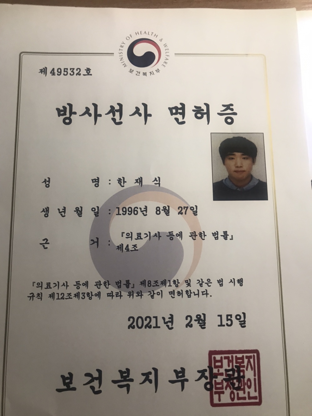 안녕하세요! @han6064 입니다 제가 지난 2020년 방사선사 국가시험에 합격하고 그 후 2달뒤인 2월 15일에 면허가 왔다는 카톡을 못보고 계속 있다가 결국 경비실에서 전화가 와서 찾아갔습니다