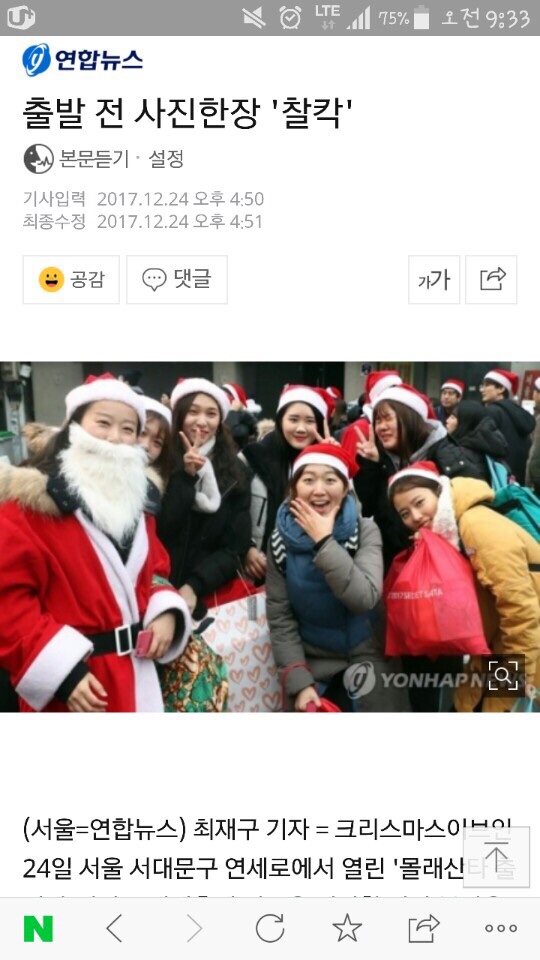 산타복장을 하고 돌아다니니 길거리 시민 분들이 사진 찍어달라고 하시는 데 ㅋㅋㅋ