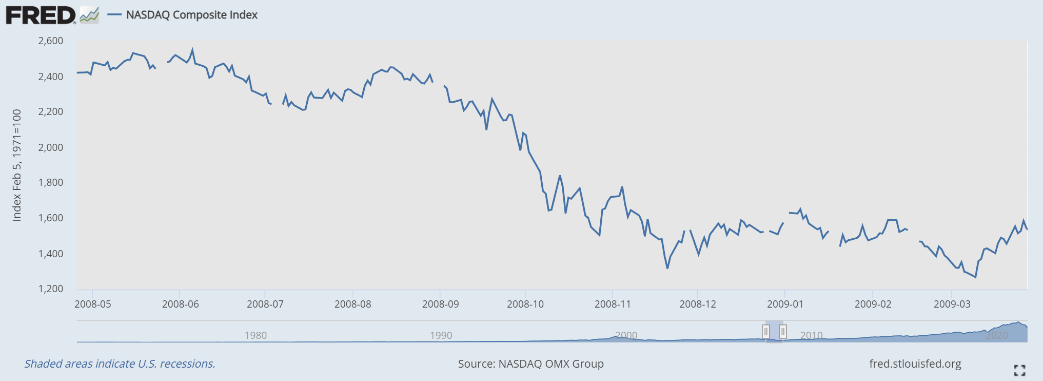 나스닥은 반토막이 났다. 하지만, 양적 긴축이 종료되고 나서 다시 통화량을 슬금슬금 늘리기 시작하였다. 이후 나스닥 차트는 어떻게 되었을까?