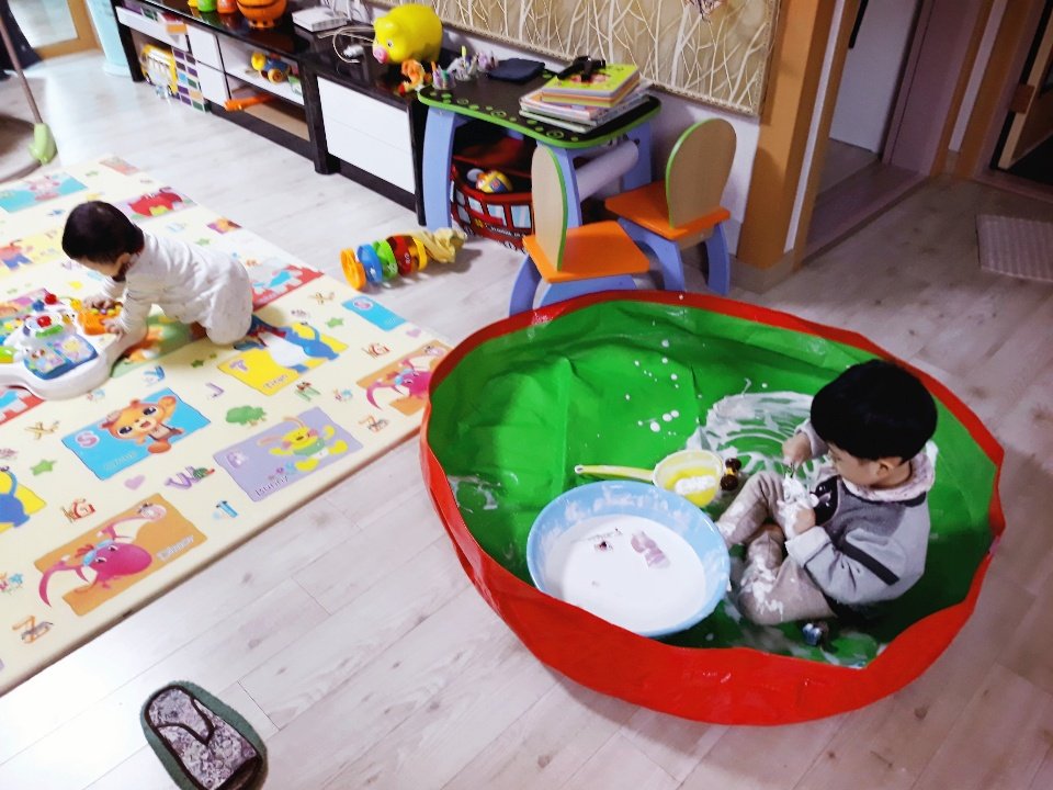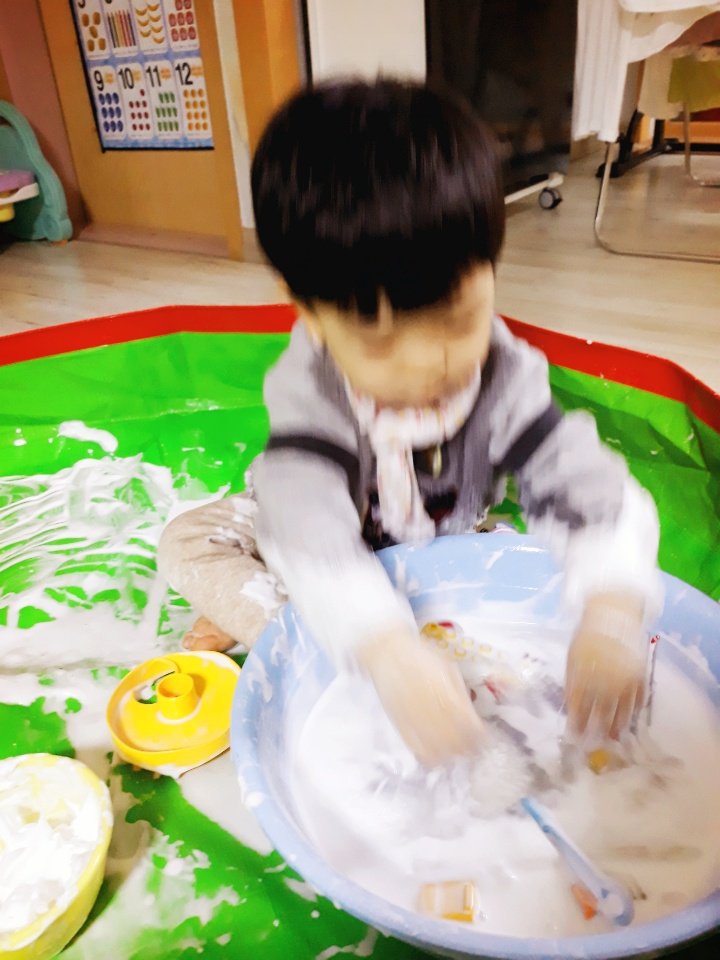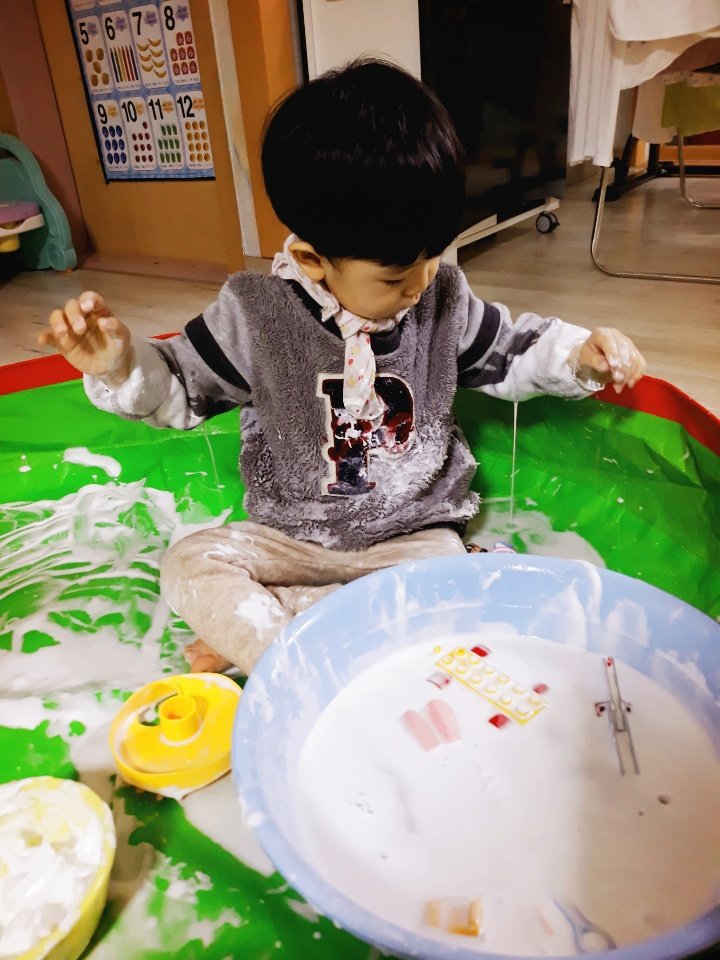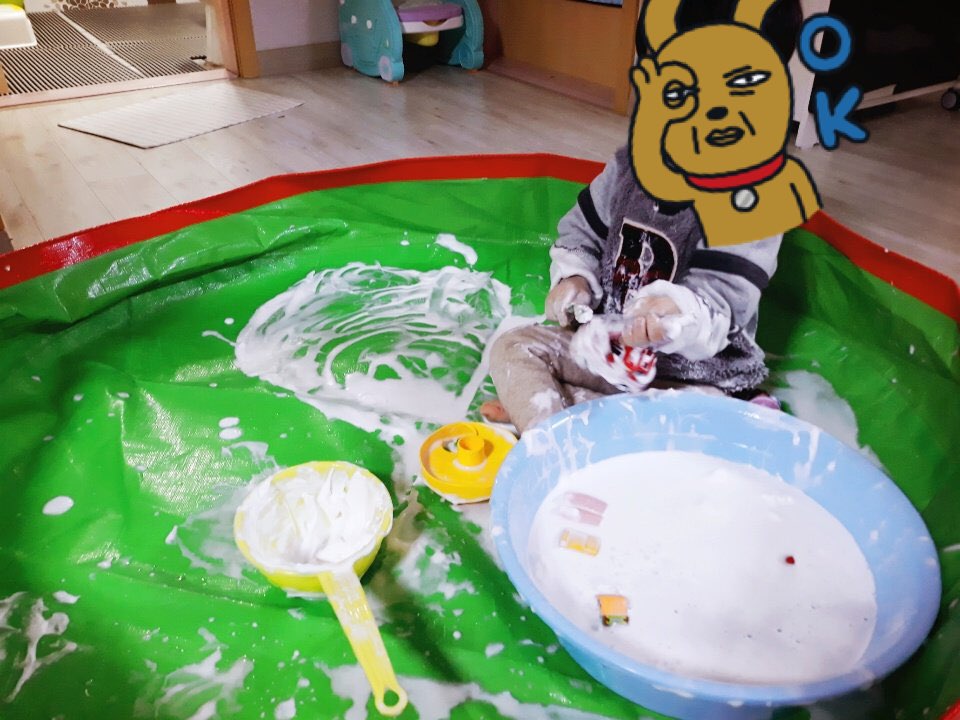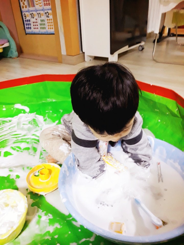 이욜! 좋아좋아🤩 생크림같은 질감에 굉장히 재미있는 놀이가 될거같다!