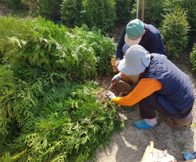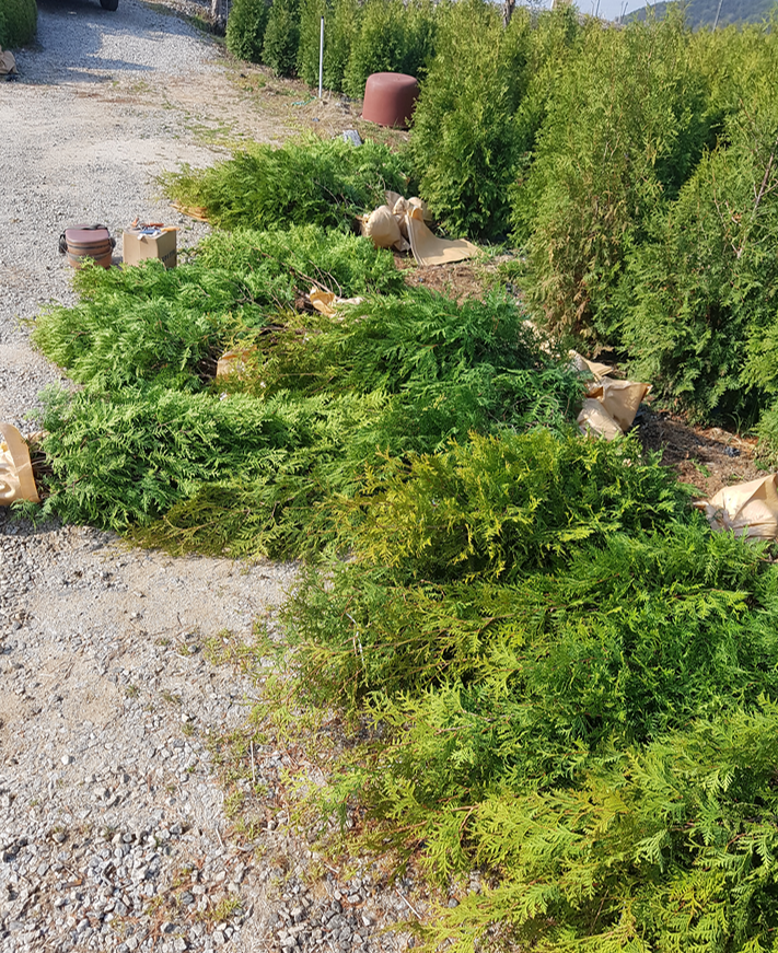 넓은 밭을 놀리기 싫어서 측백나무를 심기 시작하셨다.