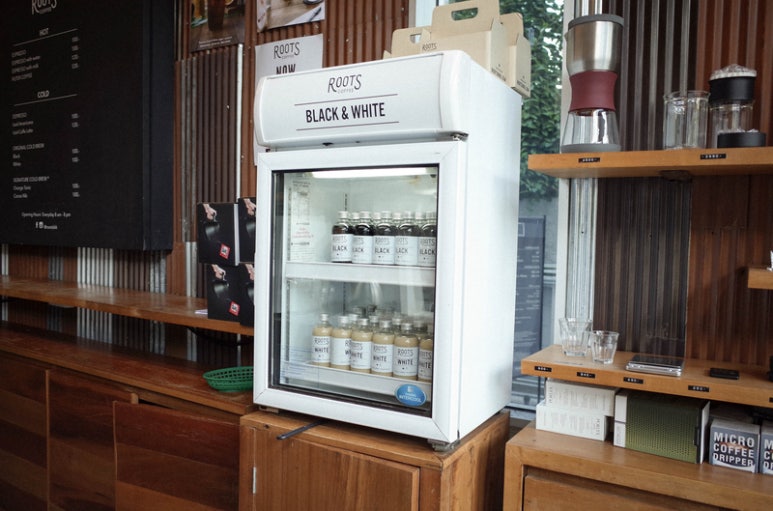 Roots coffee shop on the first floor of the food market