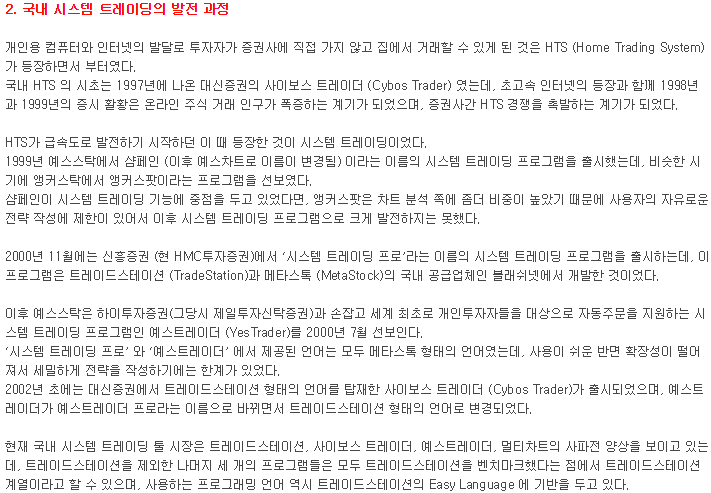 시스템 트레이딩 역사를 다시 살펴보니 저희 회사가 국내에서는 적어도 시스템 트레이딩 산 증인이란 생각이 듭니다.