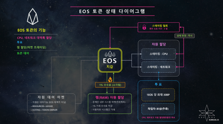 다소 생소한 용어들이 등장해서 용어에 대한 정리를 먼저 설명 해보면, EOS 토큰을 보유하고 있지만, 용도에 따라서 EOS 토큰 상태를 구분해 놓은 것으로 이해 하시면 됩니다.