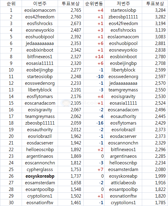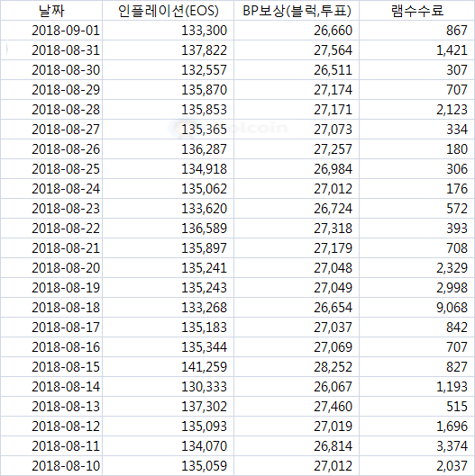 주간 리포트 - EOS 보상,투표,램마켓 - 2018년 9월 2일holcoin (50)in #kr • 8 years ago 투표 보상 - TOP 30 BP 한국 BP 이번주 순위는eosyskoreabp(26),acroeos12345(42),eosnodeonebp(48),eoseouldotio(52) 입니다 투표 vs 계정 비교 - TOP 30 BP 투표기준 대비 투표에 참여한 계정수를 비교한 결과 입니다. 일별 인플레이션 & BP보상 & 램수수료 일별 램마켓 거래량 #eos #eosrammarket #kr-newbie #jjangjjangman