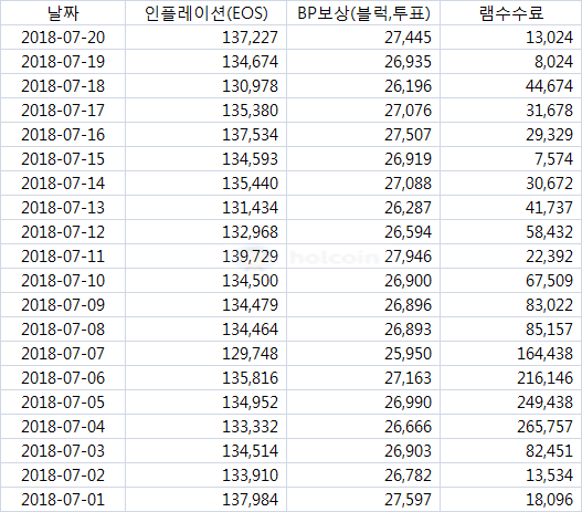 주간 리포트 - EOS 보상 & 램마켓 - 2018년 7월 21일