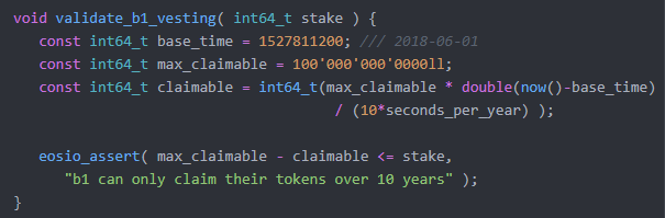 간단하게 정리하면 2018년 6월 1일을 기준으로 1억개의 물량에 대해서 경과한 시간만큼 비례해서 UnStake를 할 수 있도록 하는 코드 입니다.