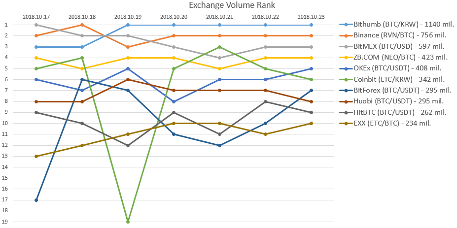 - Bithumb (BTC/KRW) - 1140 mil.