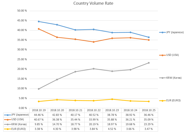 - Korea (KRW) : 19.68 % -> 23.29 % Up.