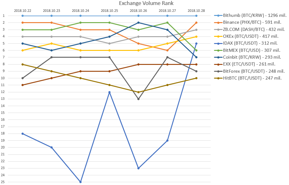 - Bithumb (BTC/KRW) - 1296 mil.