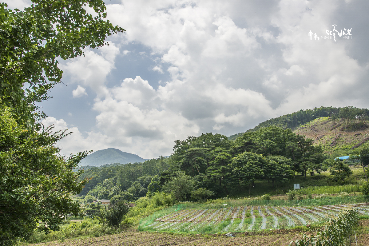 밭 가운데 나무숲이 울창합니다.