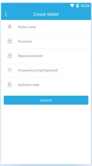 지갑 이름 정하시고 비밀번호 정하시고 추천인 입력하시면 가입 성공!