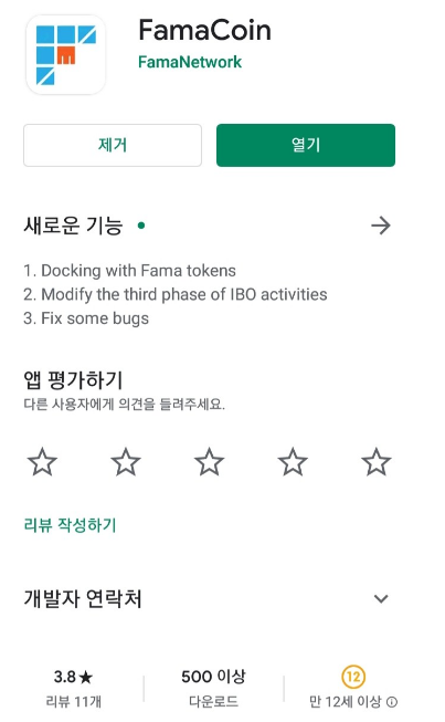 아직 다운로드 수 500밖에 안된 따끈 따끈한 코인 Fama Coin