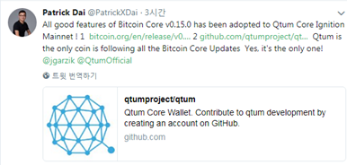 Bitcoin Core v0.15.0의 모든 좋은 기능이 Qtum Core Ignition Mainnet에 채택되었습니다! 1 https://bitcoin.org/en/release/v0.15.0 ... 2 https://github.com/qtumproject/qtum/releases/ ... Qtum은 모든 Bitcoin Core 업데이트를 따르는 유일한 동전입니다. 예, 유일한 것입니다. 하나!