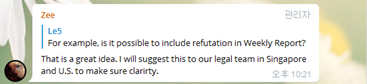 그것은 좋은 생각입니다. 나는 싱가포르와 미국의 법무 팀에이를 명확히하기 위해 제안 할 것입니다.