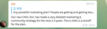 또한 마케팅 전략 및 커뮤니티 참여 계획을 수립하는 데 도움이되는 새로운 CMO (Chief Marketing Officer)가 선상에 있습니다. 계속 지켜봐.