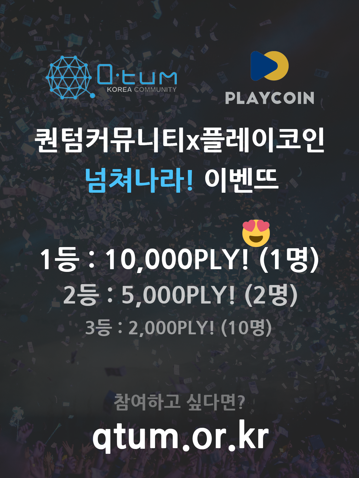 퀀텀커뮤니티x플레이코인 '넘쳐나라!' 이벤트 (1등 10,000PLY!)