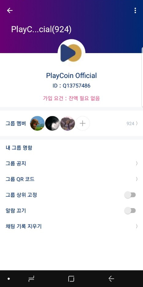 큐바오 앱 실행 후 - 채팅 - '+' - 그룹 검색 - 'Playcoin'을 검색하시면 입장하실 수 있습니다.