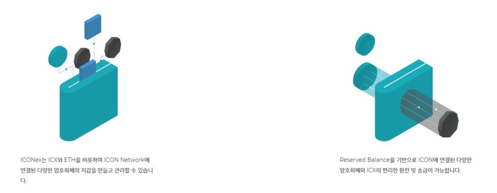 또한 ICONex 라는 플랫폼을 제공하여, 사진과 같이 ETH, ICX 등 다양한 암호화폐를 하나의 지갑(ICX 지갑)에서 보관하고 송금할 수 있는 기능을 제공하고 있습니다. 여기서 지갑(ICX 지갑)은 고유한 ID로 등록(ICXNick)하여 암호화폐 지갑 의 어려운 주소 대신 편리하게 이용하게 하겠다고 하였습니다. 거기다 연결된 다른 암호화폐를 환전은 물론 송금을 가능하게 하여 거래를 가능하게 하는 기능을 제공한다고 하는데요. 이렇게 들으면 음, 암호화폐 거래소들은 다 사라지겠네? 하는 생각이 들지만 모두 친화적인 관계를 유지하고 있어, 많은 비전을 가지고 있음은 물론이고 WIN-WIN 구조를 생각하고 있다고 합니다.