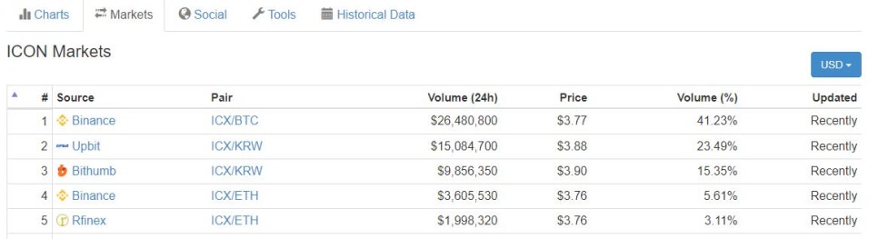 ICX는 블록체인 세계를 연결하는 프로토콜이자 실시간 결제 가능한 암호화폐라고 설명하고 있는데요. ICX 공식 홈페이지에서 1 ICX의 가격을 BTC, ETH, USD로 환원하여 보여주기도 하며, 다양한 거래소에 상장되어 있음을 증명하였습니다.