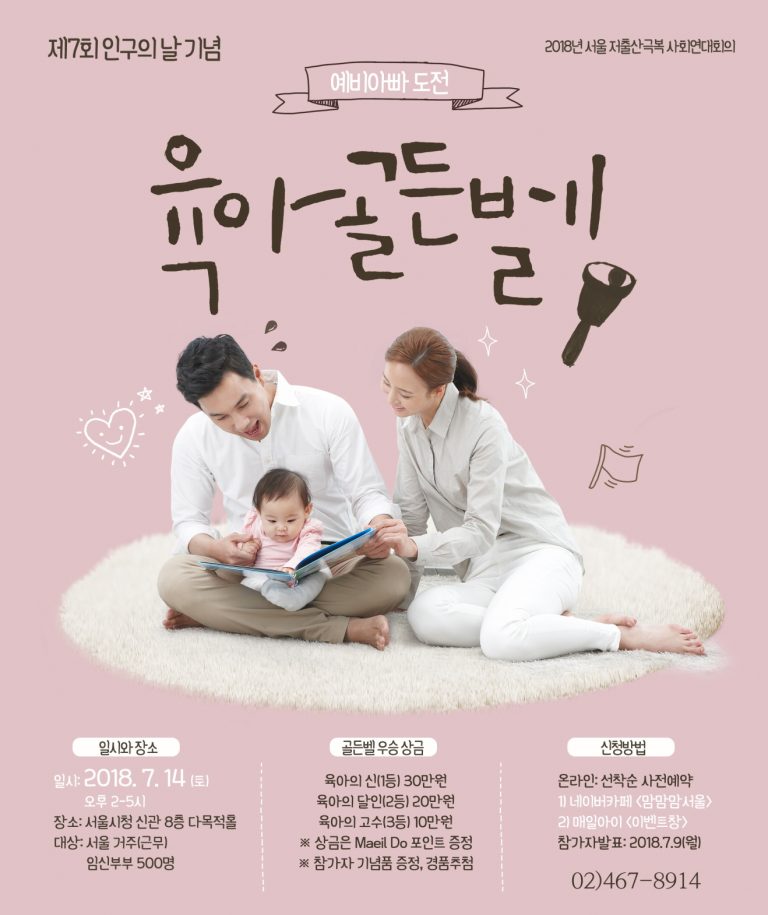 제7회 인구의 날 기념, <예비아빠 도전 육아골든벨> 행사hygge (56)in #kr • 8 years ago 제7회 인구의 날 기념, <예비아빠 도전 육아골든벨> 행사를 개최합니다. 일 시 : 2018. 7. 14.(토) 14:00~17:00 장 소 : 서울시청 8층 다목적홀 대 상 : 서울거주(근무) 임신부부 500명 ∗자세한 사항은 02-467-8914로 문의해주시기 바랍니다. [출처:서울시 홈페이지] #jjangjjangman #life #blog
