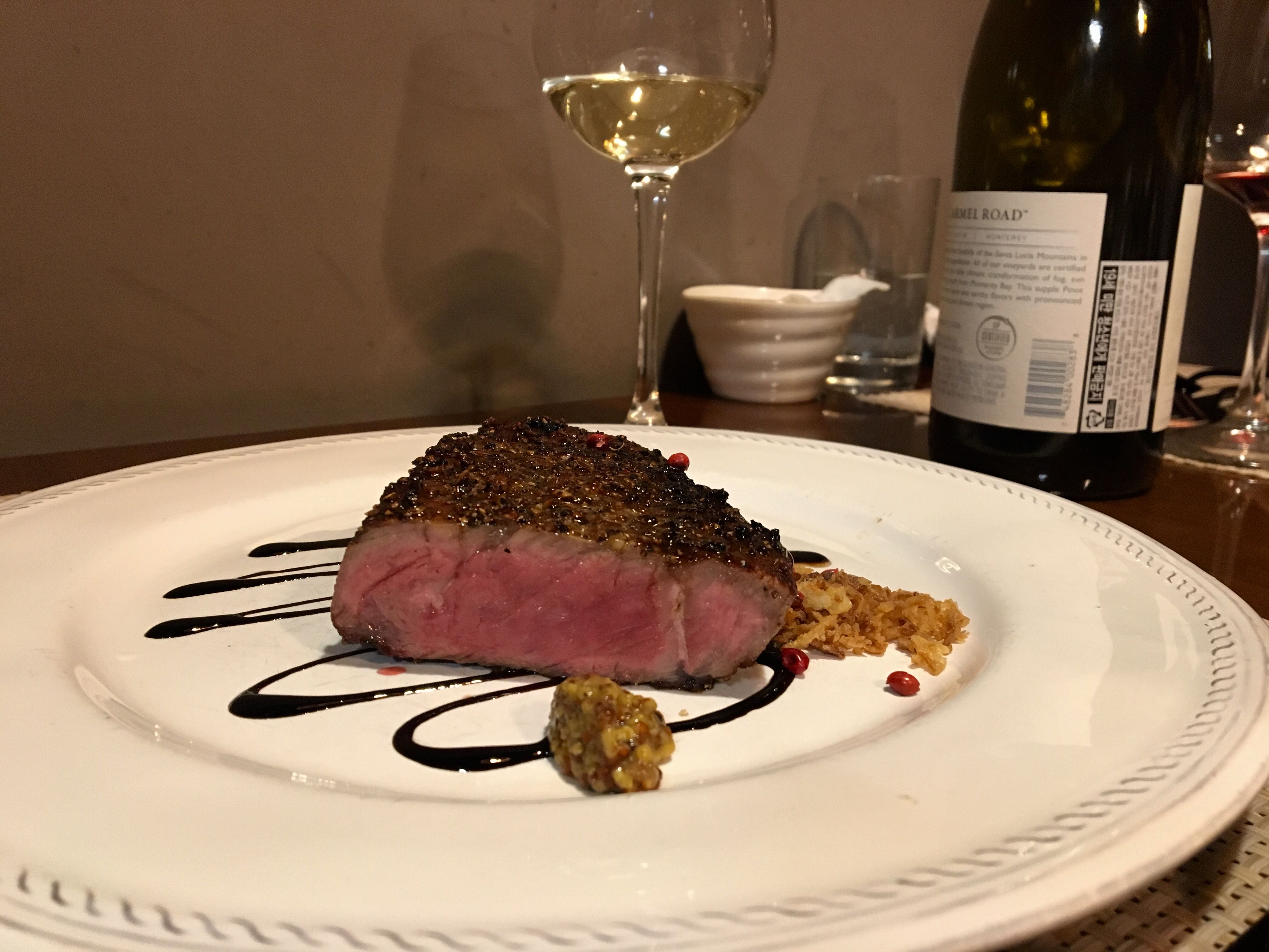 스테이크!!!!!!!! 그냥 한입 넣고 다들 우와~~ 우와~~!! 만 외쳤던게 기억납니다. 제가 하와이에서 극찬했던 울프강 스테이크보다 더 맛있었어요.. (feat.까베르네쇼비뇽) 육즙이 살아있는 스테이크 굽기 최고였습니다!!