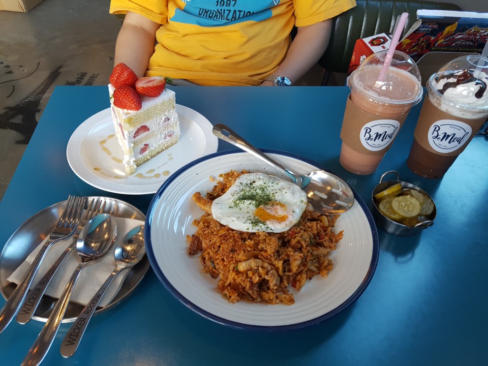저는 비밀에 갈때마다 베이컨크림떡볶이와 김치삼겹필라프, 딸기케이크를 자주 먹습니다~
