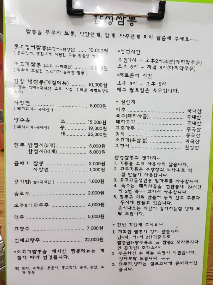 짬뽕메뉴는 때때로 달라지는데 예전에는 조개짬뽕도 있었어요
