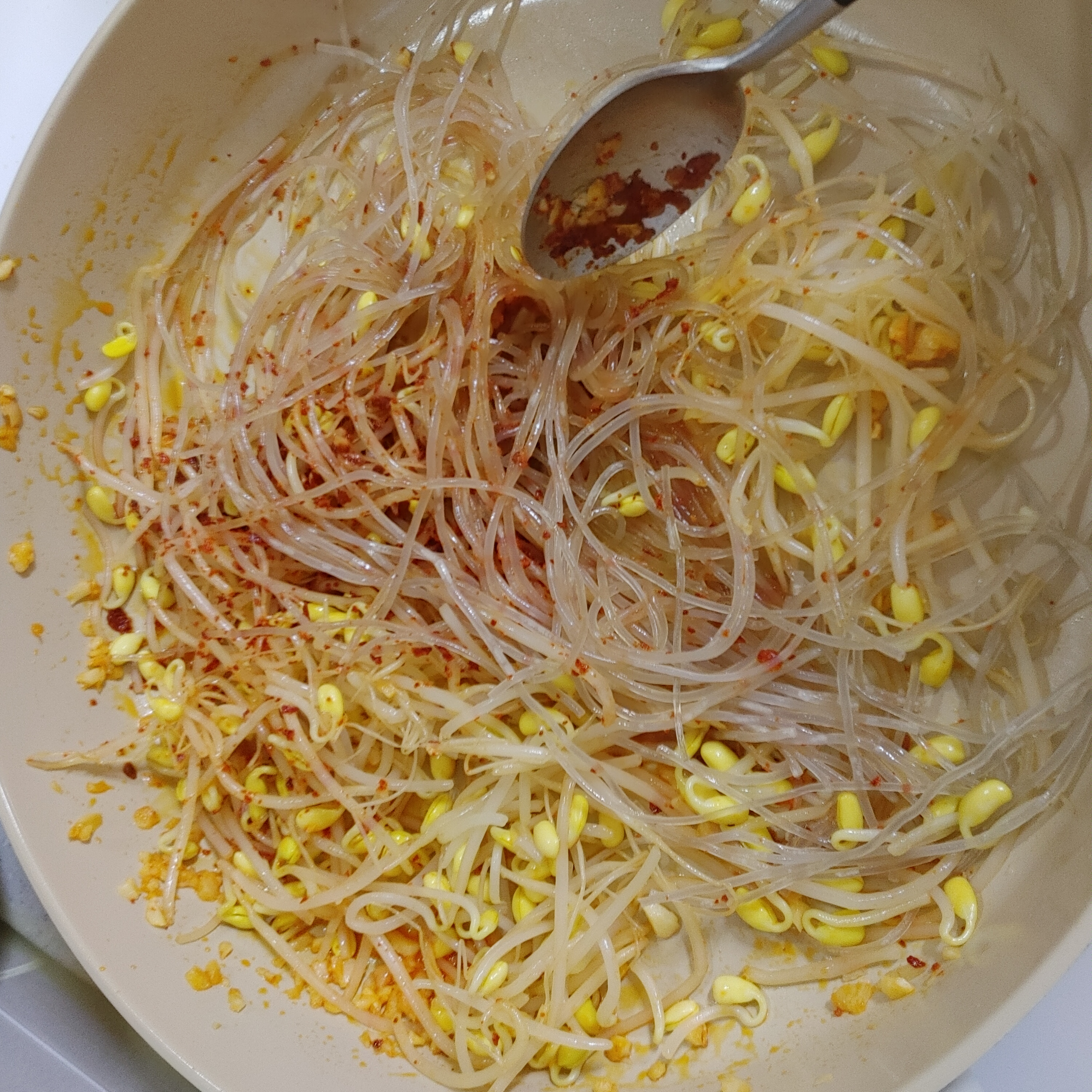 콩나물, 불린당면, 고춧가루, 굴소스, 참기름을