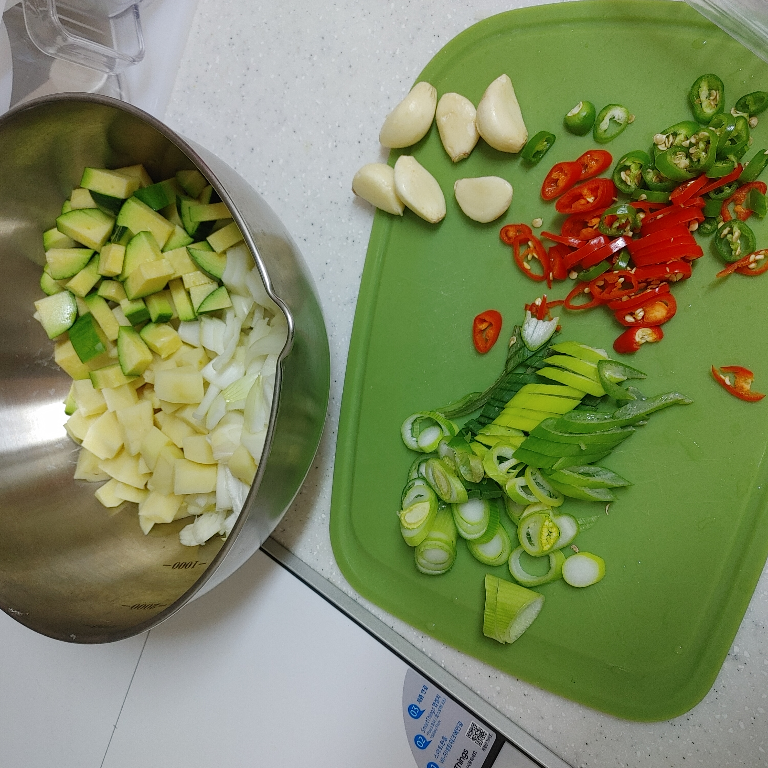 된장찌개에 들어갈 재료들을 준비해줍니다🤗