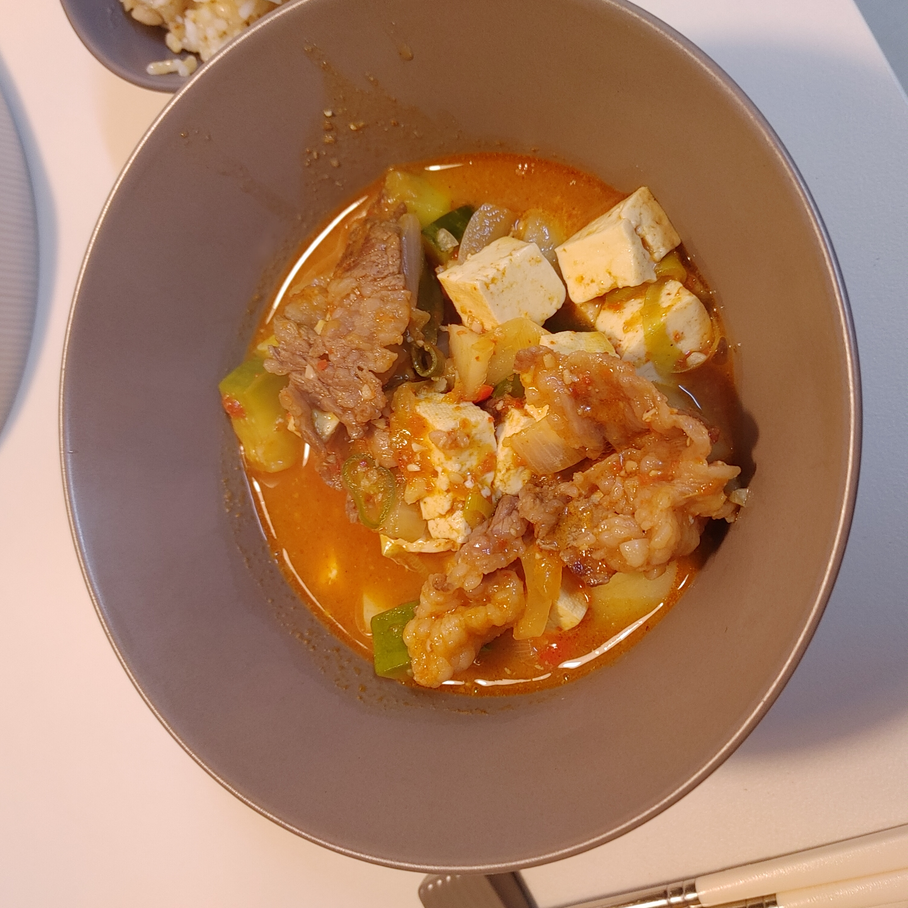 혼자 살면서 밥 하는 게 넘 귀찮아 요즘은 햇반을... . 침이 꼴깍 넘어가네요. 차돌 된장찌게... . ^^