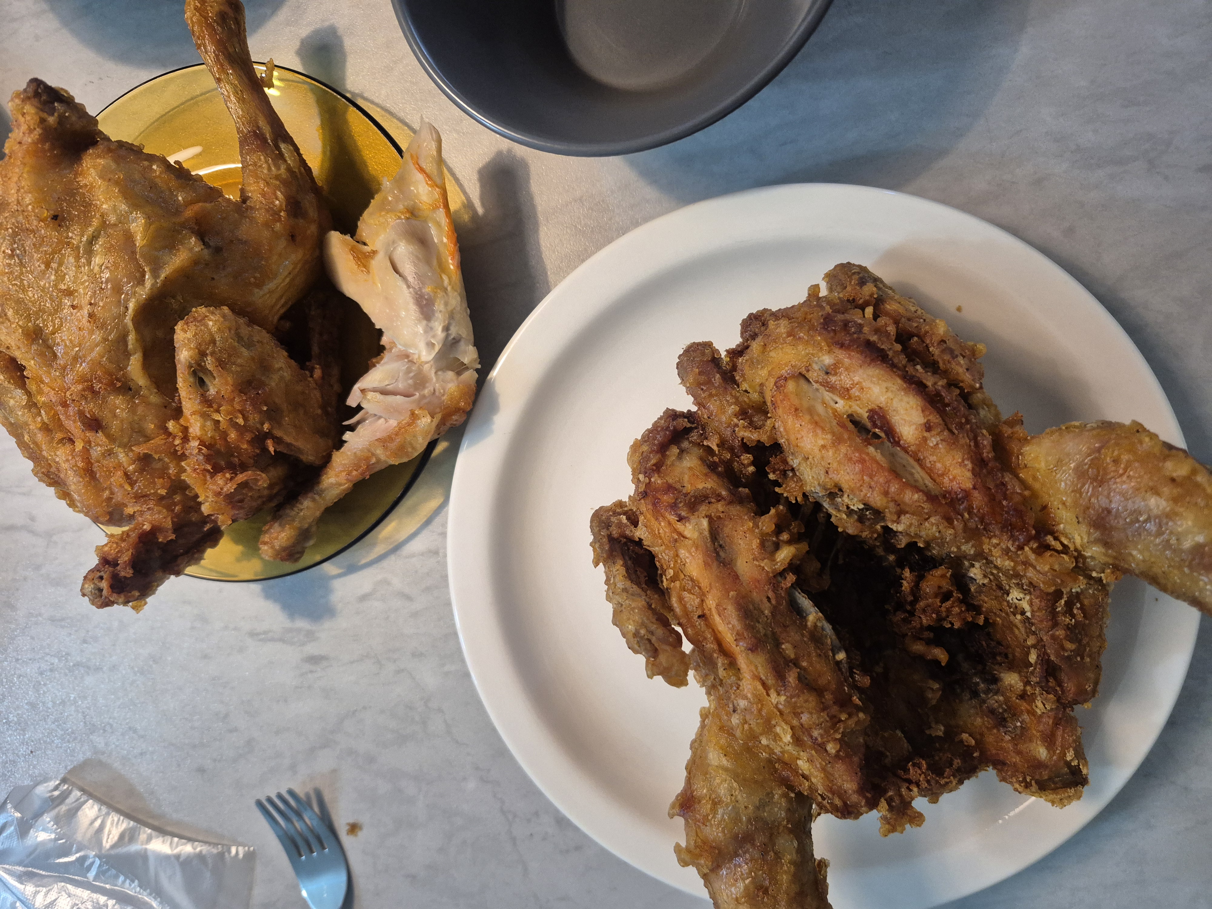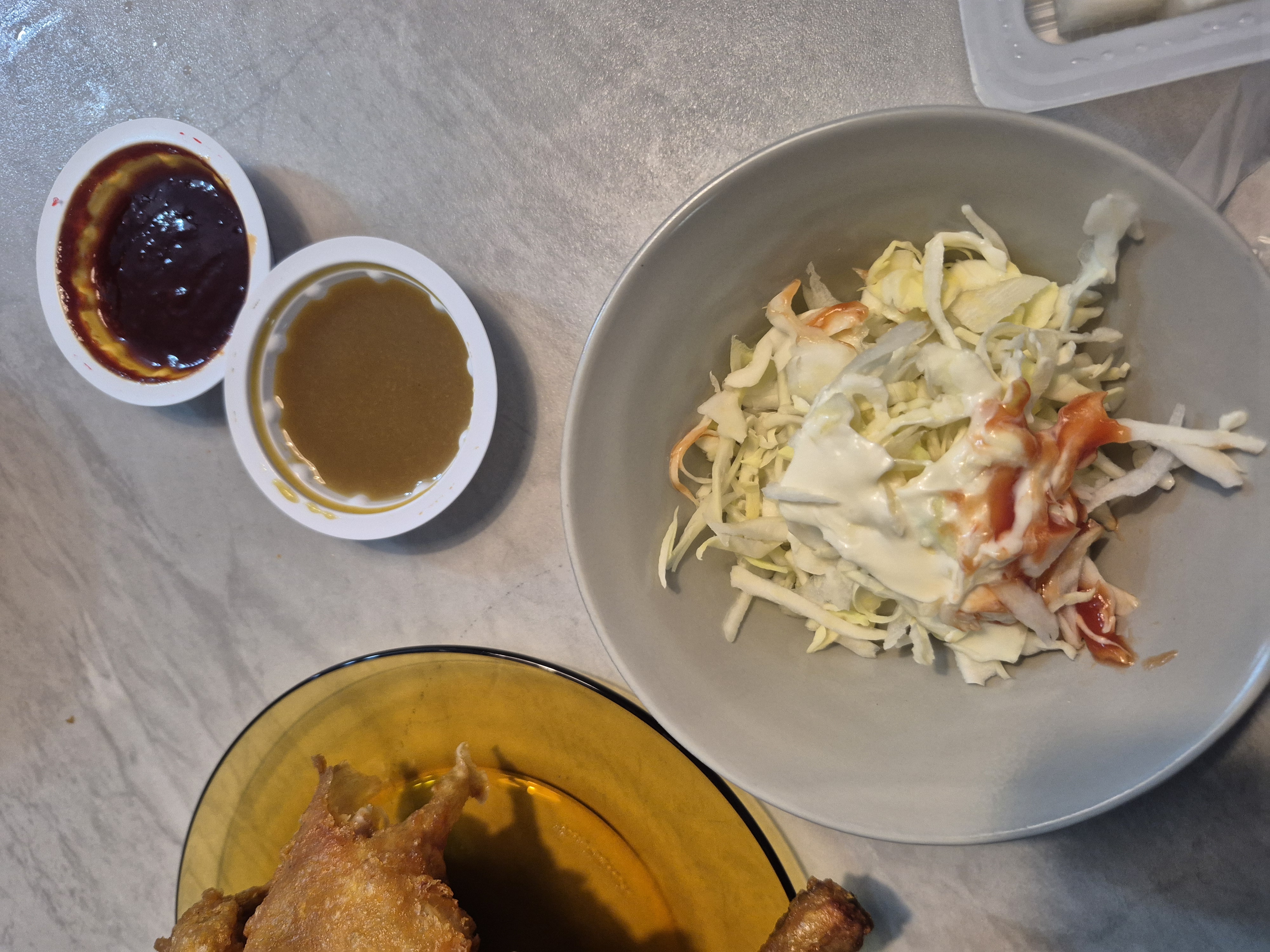 [26.04.24]정주부의 저녁밥상(신선옛날통닭)ini4909 (83)in #kr • 2 days ago 신선옛날통닭 와이프가 퇴근하고 저녁에 옛날통닭이 먹고싶대서 '신선옛날통닭'이라는 곳에서 한번 치킨 2마리를 주문해봤는데요🍗 하필 염지가 매콤한걸로 되어있어서 첫째는 먹다가 매워하면서 못먹었네요🥲 양배추 샐러드와 소스도 2가지로 나오네요 첫째가 못먹어서 와이프랑 둘이 배터지게 먹었습니다🤣 #food #life #h4lab #krsuccess