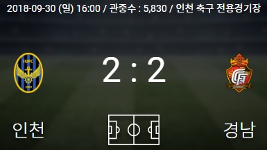 인천과 경남은 말컹의 득점은 없었지만 말컹에게 집중된 사이 다른 선수들이 좋은 모습을 보여줬고 하지만 말컹이 빠지고 나서 급격하게 무너진 경남 꼭 이 부분은 보완해야합니다. 인천은 수비에서 실수가 좀 있었지만 그래도 잘 막았다고 생각이 들고 무고사가 끝까지 전방에서 흔들어줘서 극적인 무승부를 거두었고 인천의 포기하지 않는 모습은 보기 좋았습니다.