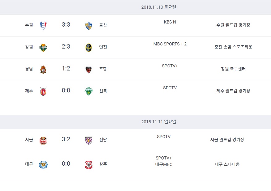 이제 2018시즌 K리그도 두경기 남았습니다.ㅠㅠ