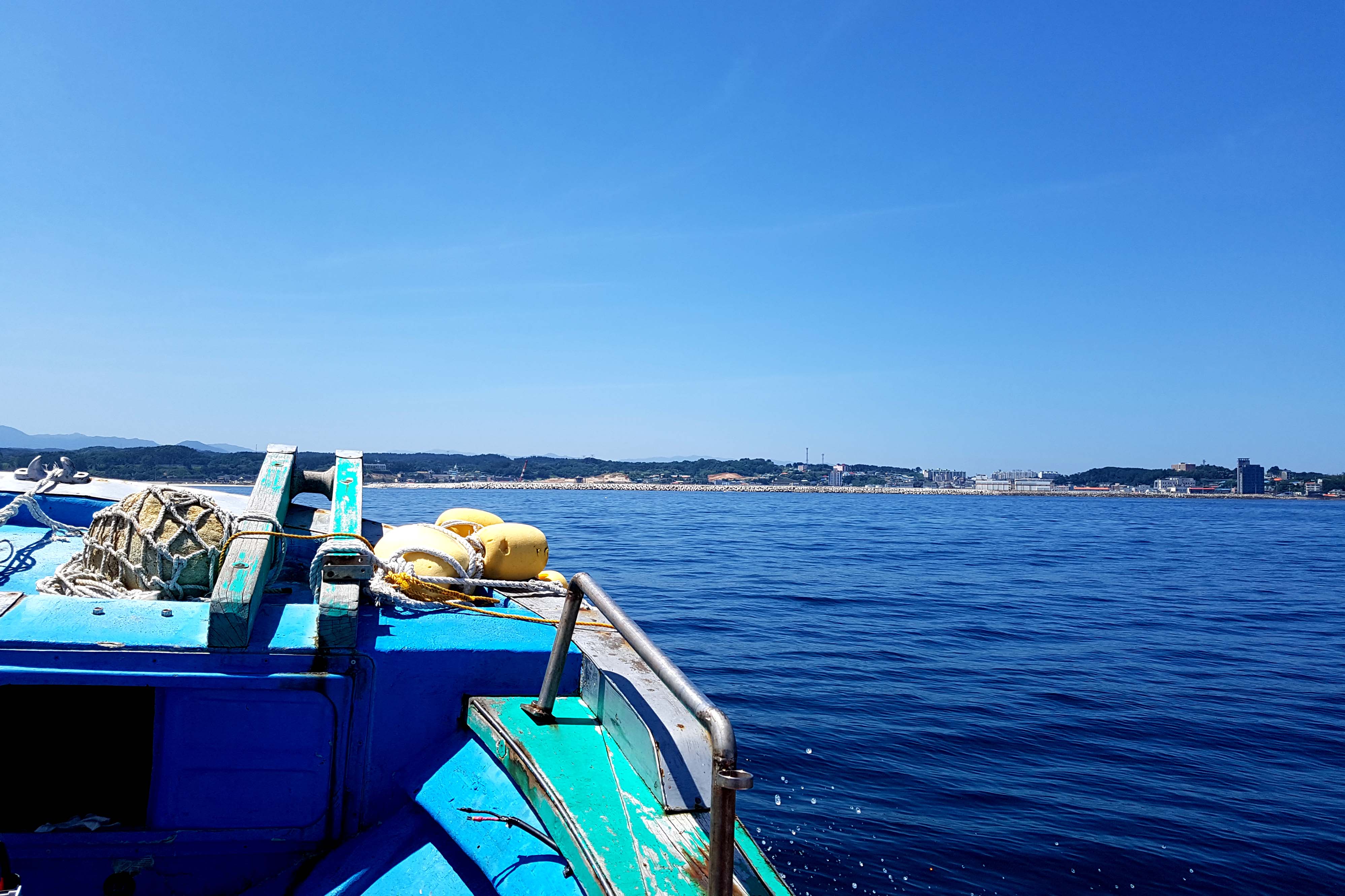 동해답지않게 아주 잔잔한 바다를 시원하게 가르면서